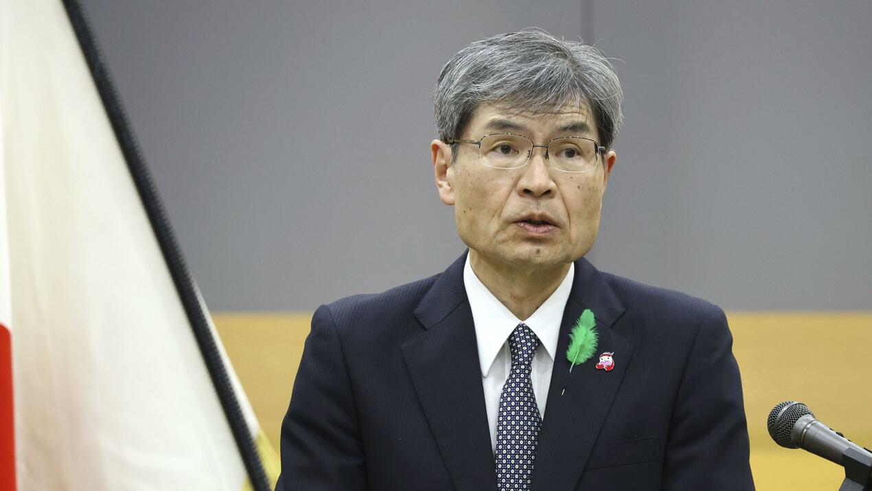 日本警察厅长官楠芳伸在全国会议上作出训示。4月15日下午摄于东京都千代田区。(共同社)