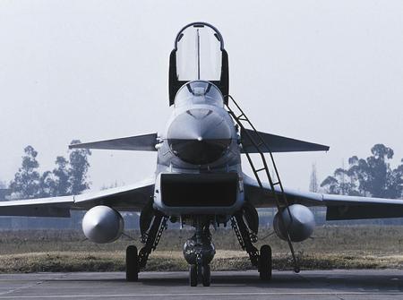 飞机为串座、双发、两侧翼下进气、单垂尾、全动平尾、前三点起落架正常布局,采用大边条、翼身融合体设计,机翼为中等展弦比、带前缘锯齿,两台涡轮风扇发动机置于机身内。