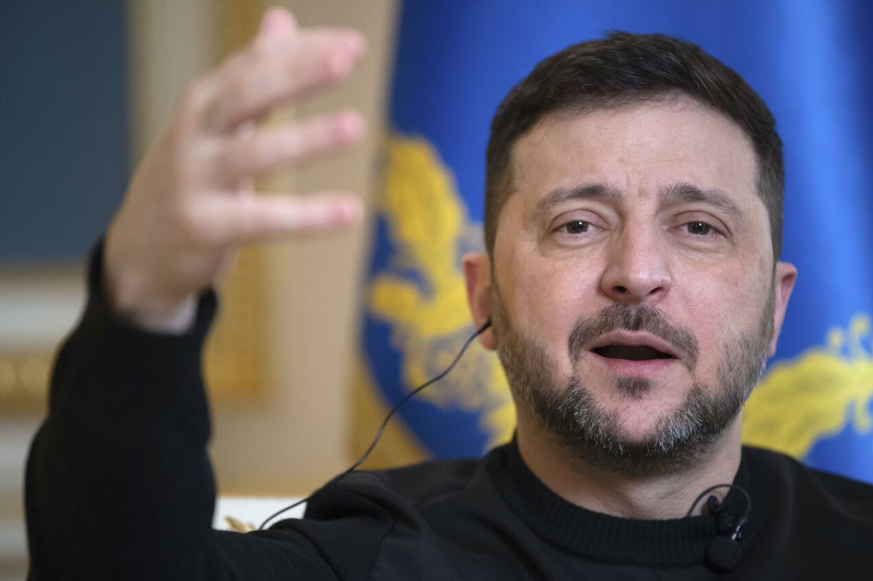 2月19日,乌克兰总统泽伦斯基在首都基辅接受共同社独家采访。(共同社)