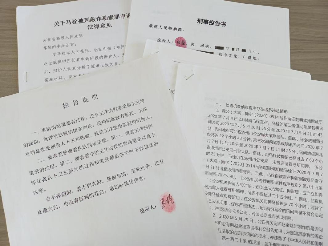 2020年9月29日,马栓涉嫌“敲诈勒索罪”,向涿州市检察院移送审查起诉。一个月后,案件被退回补充侦查。